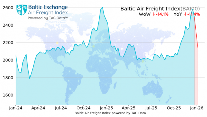 air freight rates fell sharply at the end of 2025 after the traditional peak shipping season, despite a year marked by geopolitical tension, shifting supply chains and trade disruption.